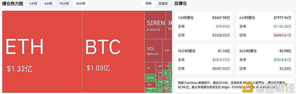 过去24小时全网爆仓近3亿美元