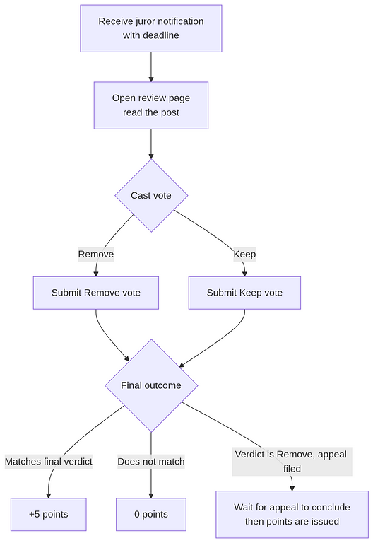 • ⚠️ For a Remove verdict, juror points are held until the 24-hour appeal window closes