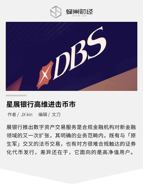 新加坡最大商业银行星展银行 DBS推出 DBS Digital Exchange(DDEx),这是合规加密交易、托管、STO业务,也支持 BTC/ETH/USDT 等法币兑换,但仅限合格投资者。 同年也发行了国库代币(Treasury Tokens)、区块链债券、稳定币结算 。