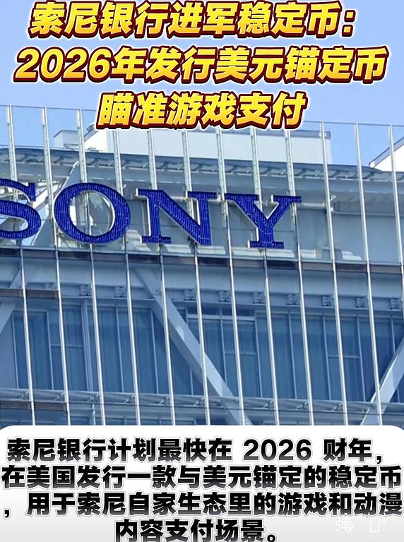 索尼银行进军稳定币:2026 年发行美元锚定币,瞄准游戏支付。