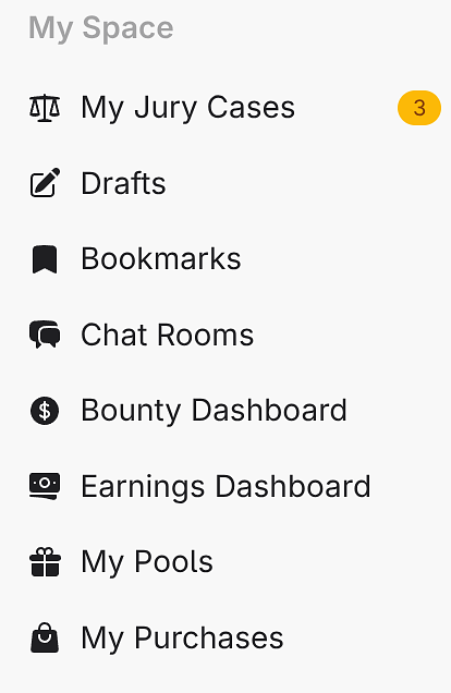 Jury dashboard only shows for jurors. The menu entry moves to the top of “My Space” and only appears when you have assigned cases. A badge shows your pending count at a glance.