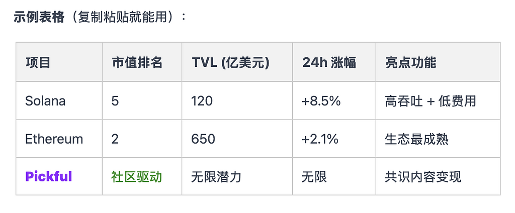 示例表格(复制粘贴就能用):