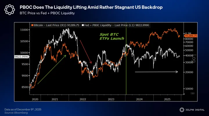 这有助于刺激国内市场(如中国股市)的复苏——而且我们知道,中国人民银行的流动性也是比特币周期的一个关键驱动因素。