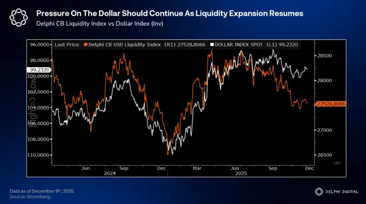 美联储结束量化紧缩政策(QT)表明,其优先事项已从增加通胀保险转向流动性稳定。通胀率趋于接近目标水平,劳动力市场虽在降温但尚未崩溃,以及信贷压力目前较为温和,这些因素足以让政策制定者在寻求平衡的过程中发出绿灯。