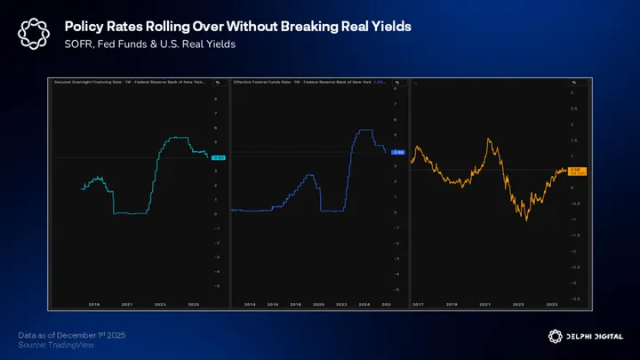 美联储正在放松货币政策,但并未引发实际利率暴跌,这表明 #美联储 正在采取受控的过渡措施,而不是恐慌性的政策转向。