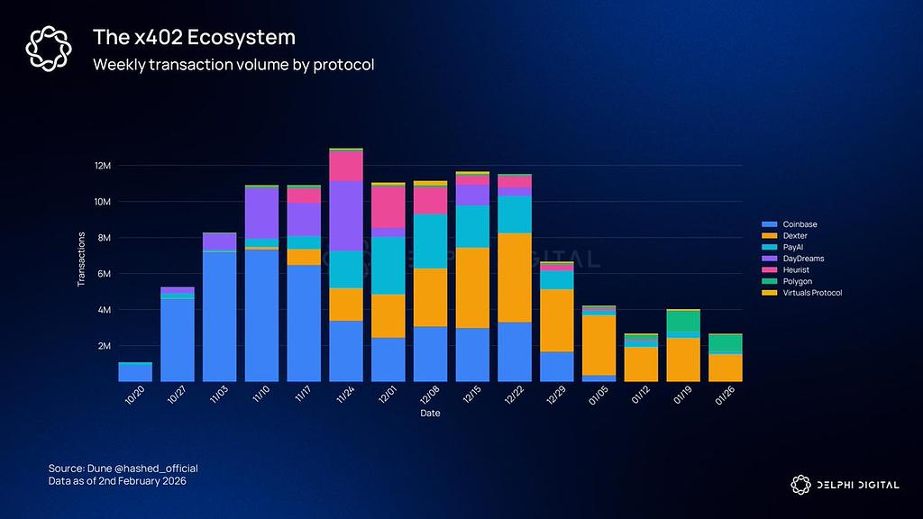 Delphi Digital报告预测2026年AI代理将通过x402协议实现自主交易,推动代理经济转型加密领域。