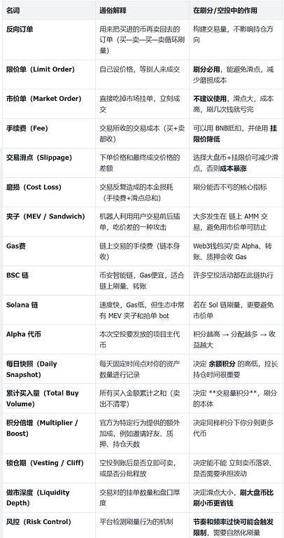 先说一下在刷币安Alpha之前,我把在场景中遇见的常见核心概念罗列的一遍,可以针对性阅读: