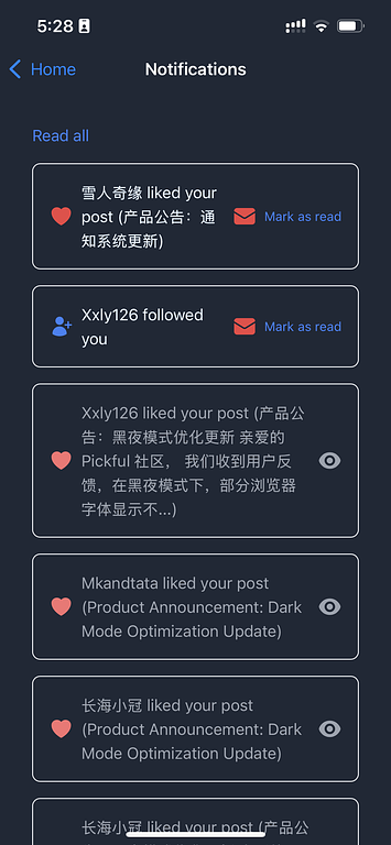 Icon Optimization: Fixed the issue of icons being squeezed or distorted when liking or commenting on long posts. The notification list now looks more attractive and recognizable.