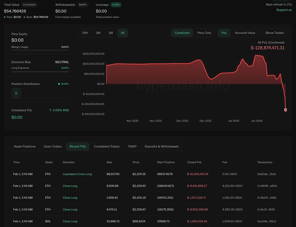 他这次做多爆仓亏完了他在 12 月初转进 Hyperliquid 开单的 2.3 亿 USDC。这个数额对还持有着价值 $48 亿资产(90.1 万枚 ETH+3.3 万枚 BTC) 的他来说虽然是没有伤筋动骨,但心疼估计还是有的。 #eth #usdc